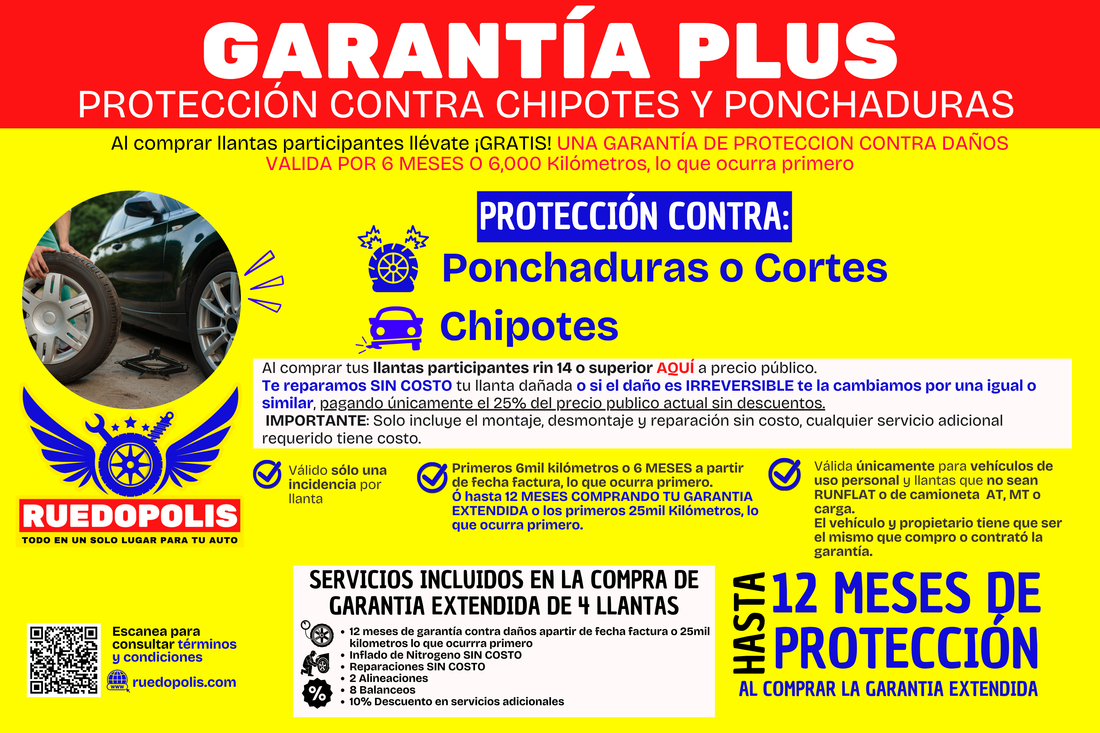 Las llantas participantes tendrán una vigencia de 6 MESES a partir de la fecha de compra o hasta los primeros 6,000 KILOMETROS, lo que suceda primero.